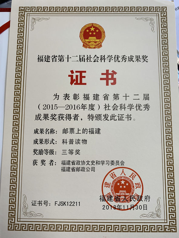 在黨的十八大、十九大精神指引下,我們積極發(fā)揮政協(xié)的平臺(tái)優(yōu)勢(shì),集思廣益,團(tuán)結(jié)了大批優(yōu)秀的長(zhǎng)期從事黨史、檔案、集郵、文史研究工作和文學(xué)創(chuàng)作的專家學(xué)者,組成政協(xié)文史工作人才團(tuán)隊(duì),從《郵票上的福建》開始,走上了郵票系列圖書的長(zhǎng)征創(chuàng)新路。人們常說郵票是“國家名片”,我要說,郵票特別是郵書,也是承載福建經(jīng)濟(jì)、文化、社會(huì)和人文精神走向世界的名片。時(shí)光閃過6年,我?guī)ьI(lǐng)同志們一起創(chuàng)意、策劃、編寫、出版的5本綜合性或?qū)n}性郵書,得到省領(lǐng)導(dǎo)、廣大讀者的贊譽(yù)和社會(huì)的廣泛認(rèn)可——